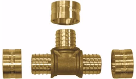 SINAPI 38875 — TE METALICO, PARA CONEXAO COM ANEL DESLIZANTE, DN 25 MM, EM TUBO PEX PARA INST. AGUA QUENTE/FRIA
