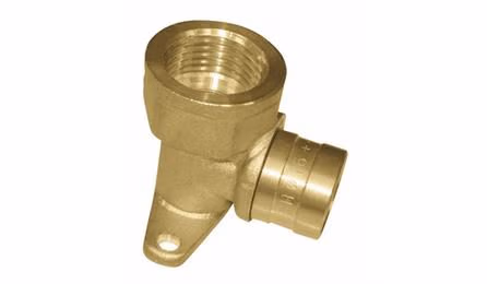 SINAPI 38922 — JOELHO/COTOVELO 90 GRAUS, ROSCA FEMEA, COM BASE FIXA, METALICO, PARA CONEXAO COM ANEL DESLIZANTE, DN 25 MM X 3/4", EM TUBO PEX PARA INST. AGUA QUENTE/FRIA